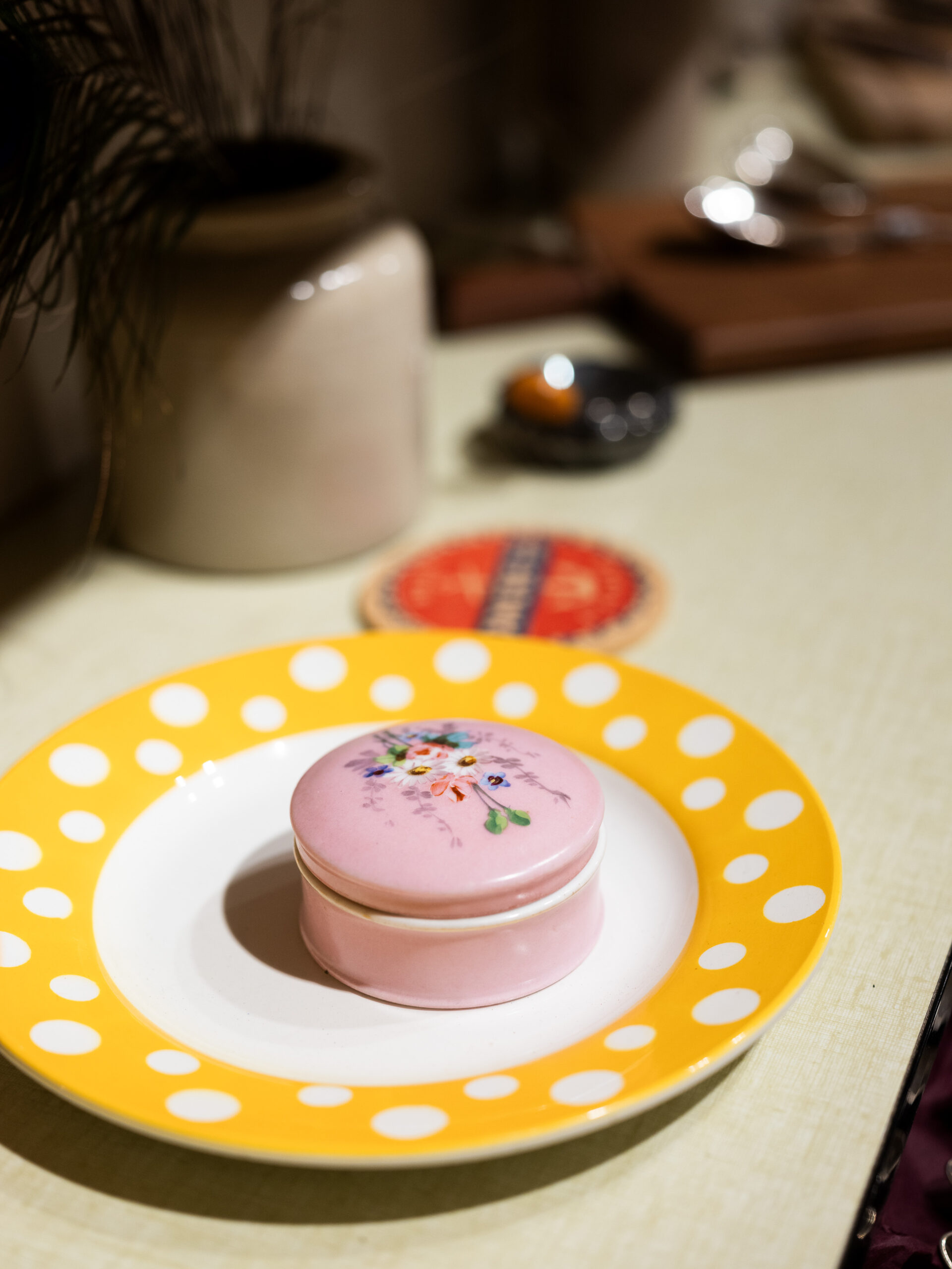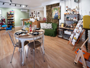 Un thème, un décor, une sélection façonnée Chaque édition s’organise autour d’un thème : une saison, une idée, une atmosphère ou une référence visuelle. À partir de ce point de départ, je compose une sélection d’objets et de mobilier : pièces chinées, créations, objets détournés et éléments scénographiques. Chaque objet est choisi pour sa présence, ce qu’il évoque et la façon dont il s’intègre à l’ensemble. Mon regard de scénographe structure l’espace et transforme le lieu en un univers complet et temporaire.